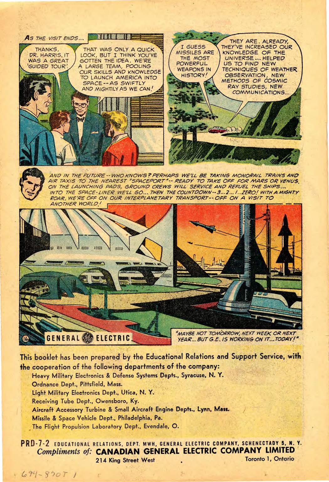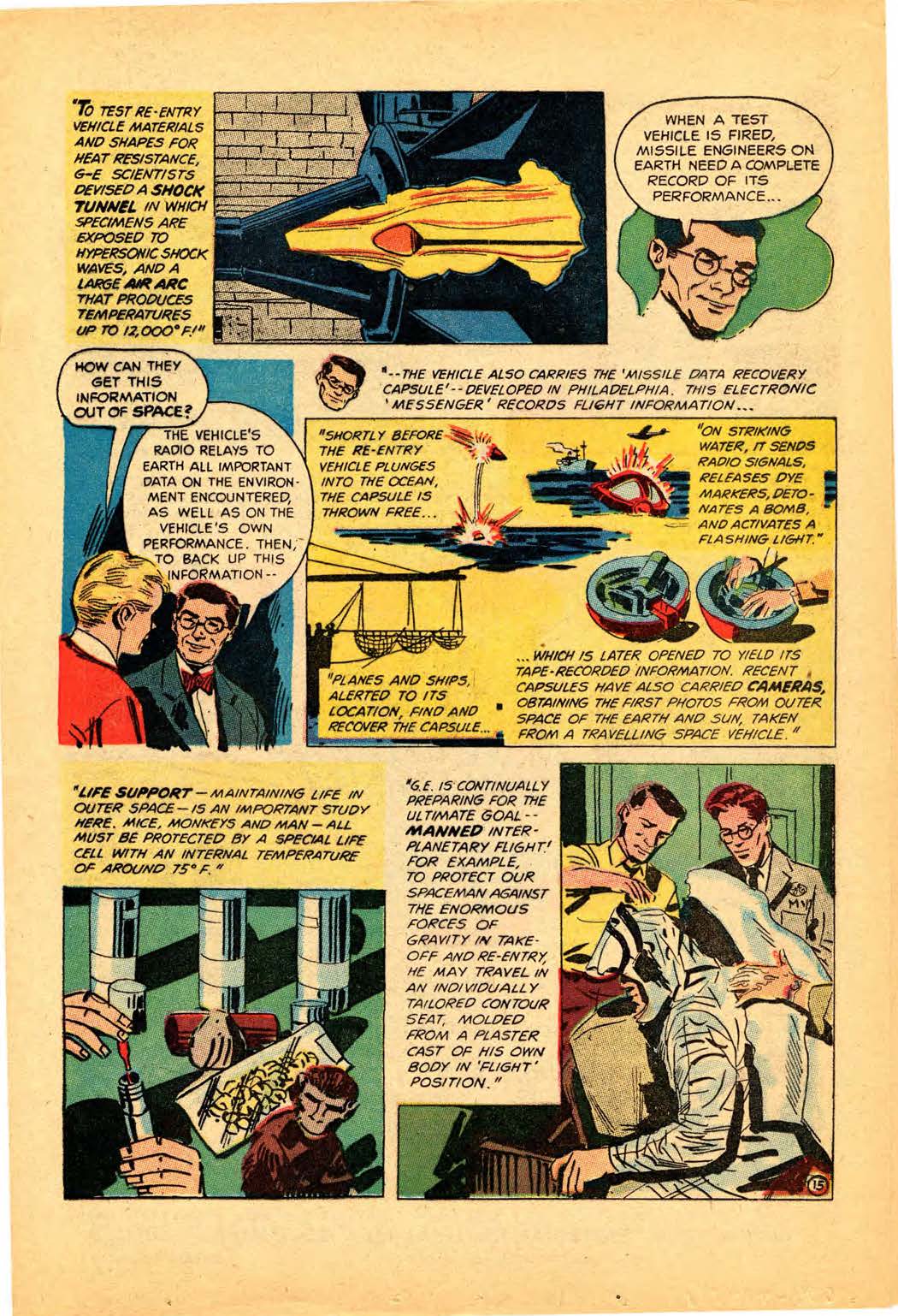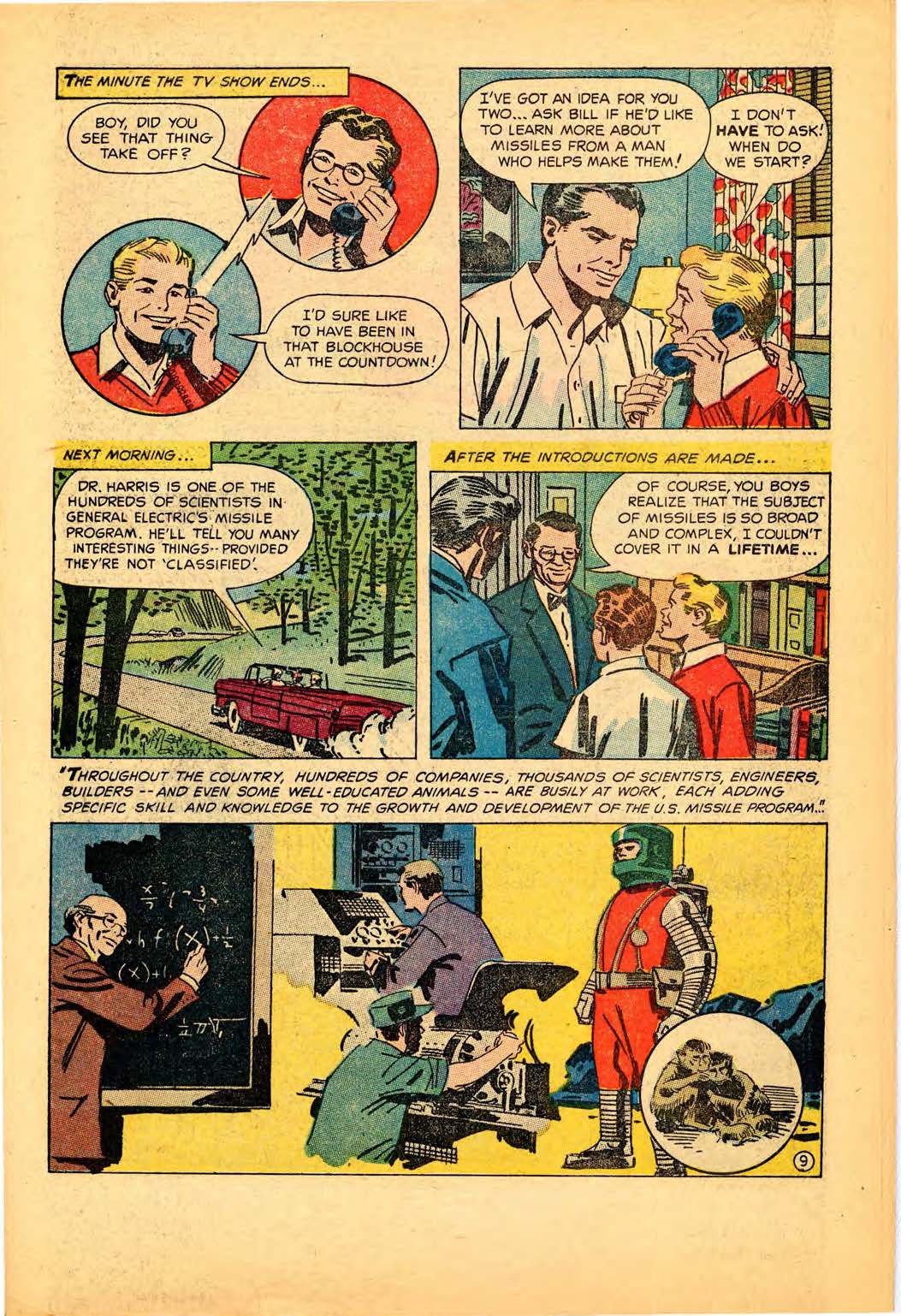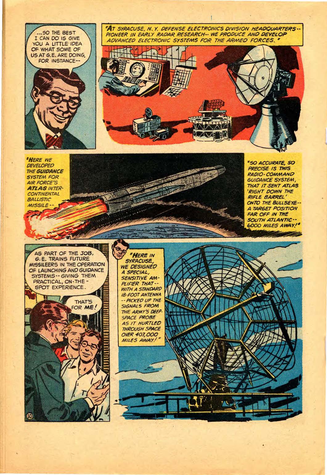 Back in the 50s, GE was soon printing comics “on mammoth presses of newsprint stock in quantities of 500,000 to 3,000,000.” But this being GE, there was a strict approval process in place. According to the Review, the “drawings were shown to several vice presidents and managers” before publication.