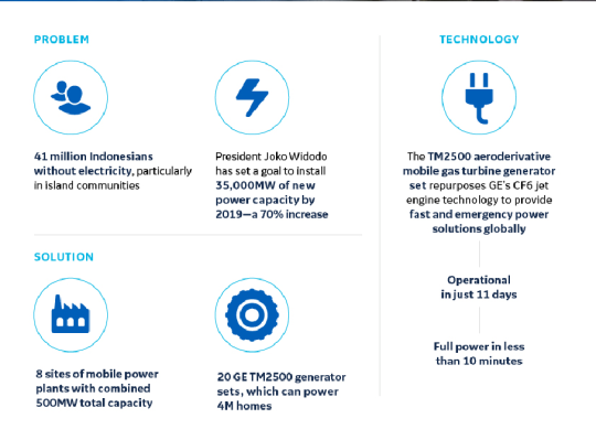 President Jokowi tasked state utility, Perusahaan Listrik Negara (PLN) to add 35 gigawatts (GW) of electrical capacity to the national grid by 2019. Step one involved the development, and launch of eight Mobile Power Plants (MPP) in several regions producing a total of 500 megawatts (MW).