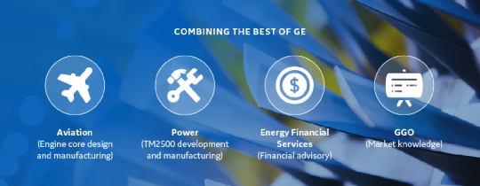The TM2500 turbine is a ground-based version of GE’s CF6 jet engine – a similar engine is used on the Boeing 747, including Air Force One